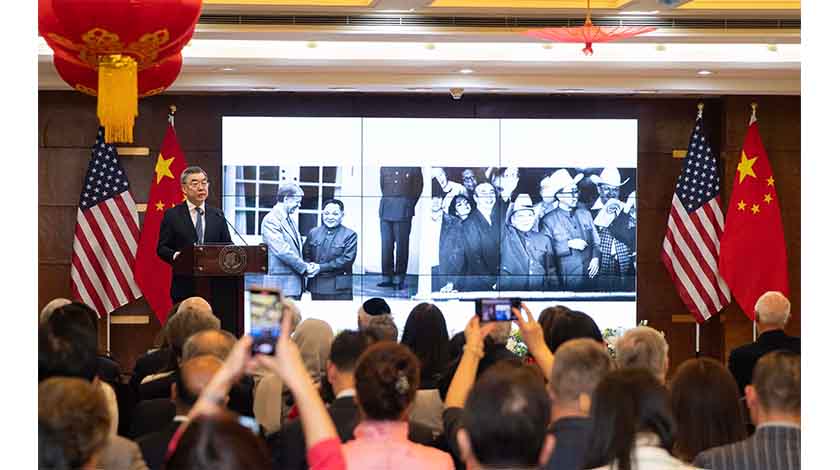 當地時間1月17日,中國駐紐約總領館舉行中美建交45周年招待會。圖為中國駐紐約總領事黃屏致辭。 中新社