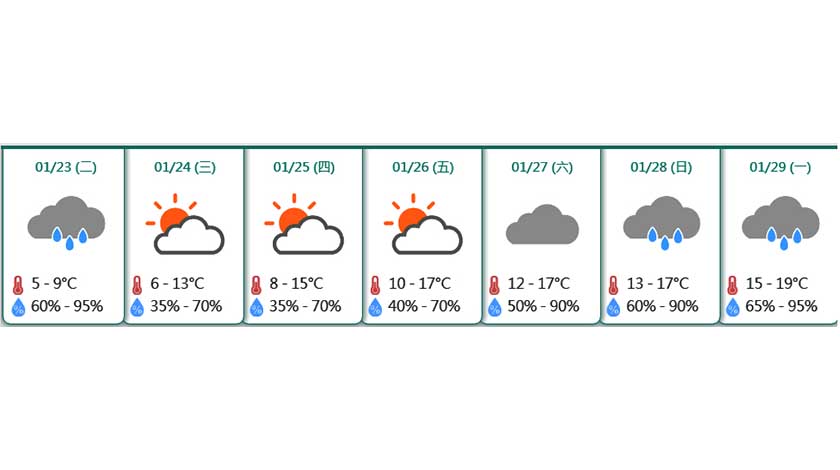 展望本周中後期,季風有所緩和,但早晚仍寒冷,日間有陽光,氣溫逐漸回升。