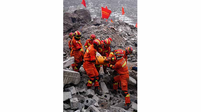 雲南昭通市鎮雄縣塘房鎮涼水村發生山體滑坡,圖為一名遇難者被找到。 中新社