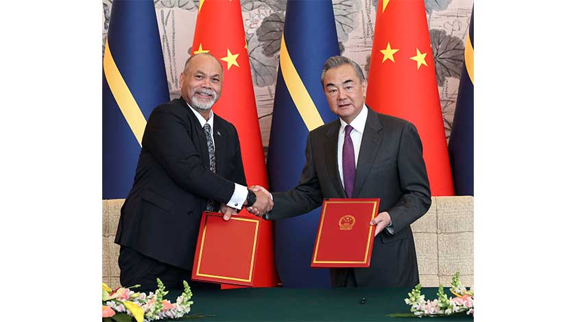 王毅表示,今天,中瑙關係翻開了新的一頁。我和安格明外長剛剛簽署了《中華人民共和國和瑙魯共和國關於恢復外交關係的聯合公報》。雙方決定,從即日起恢復兩國大使級外交關係。瑙魯成為中國第183個建交國。