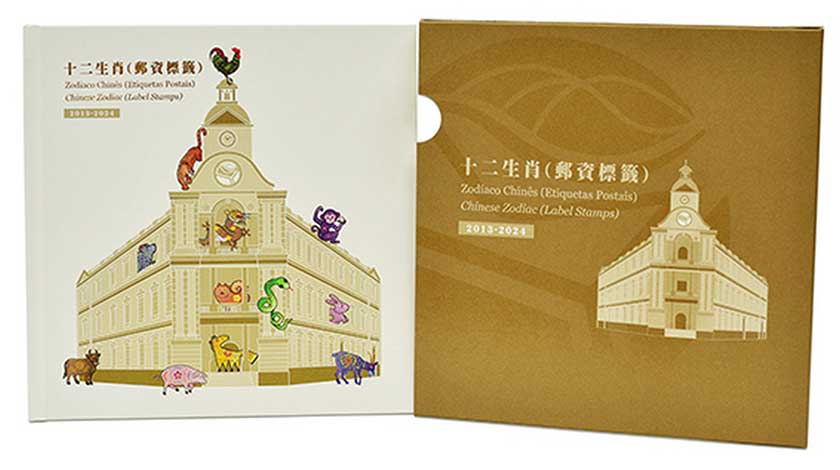 郵摺載有郵電局自二零一三年至二零二四年發行的生肖系列郵資標籤各一套,並附相關郵品的技術資料;售價為澳門元三百三十八元,在郵政總局集郵商店、水坑尾分局以及通訊博物館公開發售。