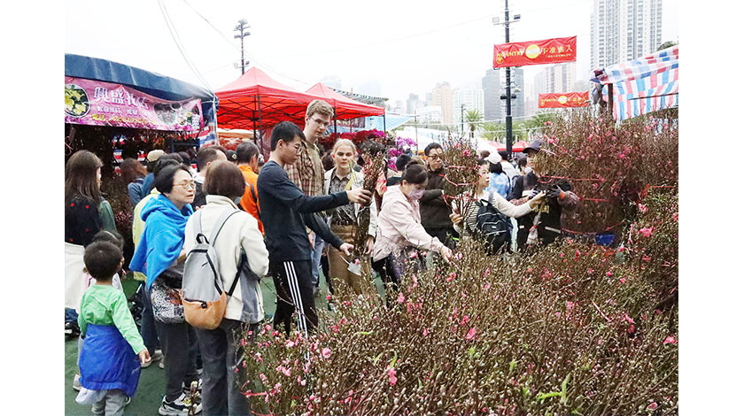 趁人流還未密集,市民陳先生和妻子從灣仔附近匆匆趕往維園年宵花市,打算一同挑選些桃花、蝴蝶蘭,預計花費千餘元(港元,下同)。亦有市民抱著半人多高的梅花滿載而歸。