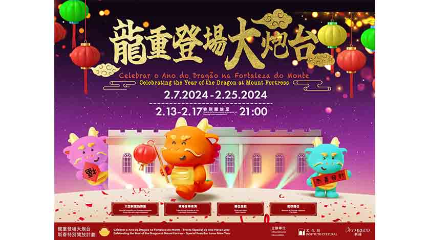 新濠一直致力推動本澳的多元經濟發展,透過多元娛樂休閒體驗推廣本澳安全宜遊的形象。「龍重登場大炮台」活動為新濠與文化局合作推進歷史片區活化企劃的一部分,早前於大炮台花園平台舉行的活動包括以中秋節、第70屆澳門大賽車、聖誕及跨年為主題的活動。「龍重登場大炮台」開放時間:每日早上七時至晚上七時(2月13日至17日延長開放至晚上九時)。