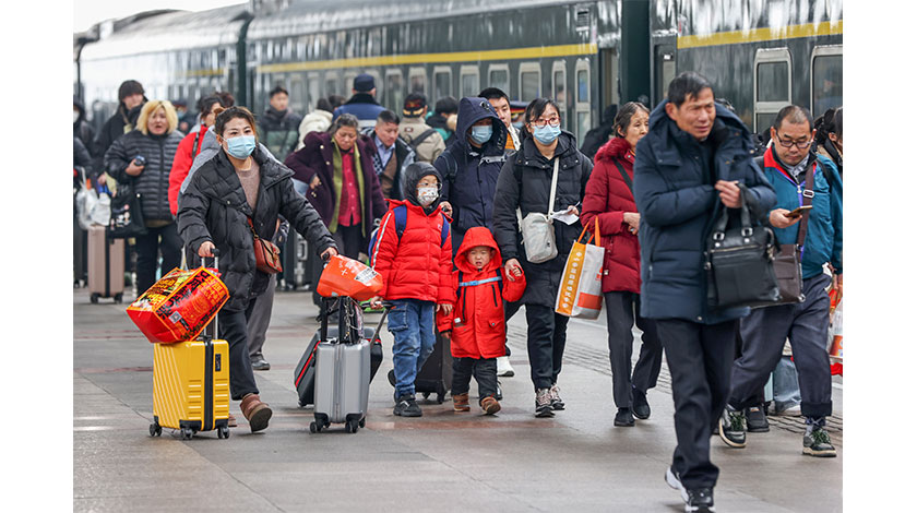 2月6日,江蘇南京,攜帶行李的旅客在火車站出行。當日,2024年鐵路春運進入第12天,客流保持高位運行。 中新社