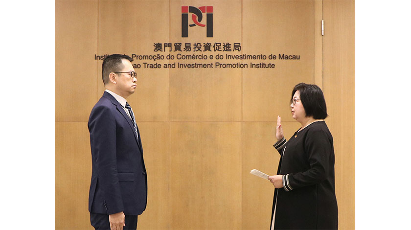 【特訊】澳門貿易投資促進局行政管理委員會執行委員黃伊琳之就職儀式於昨在中葡綜合體貿促局辦公點舉行。經濟財政司司長李偉農、經濟財政司司長辦公室主任辜美玲出席見證。儀式由貿促局行政管理委員會主席余雨生主持,局方各領導及部門主管出席。