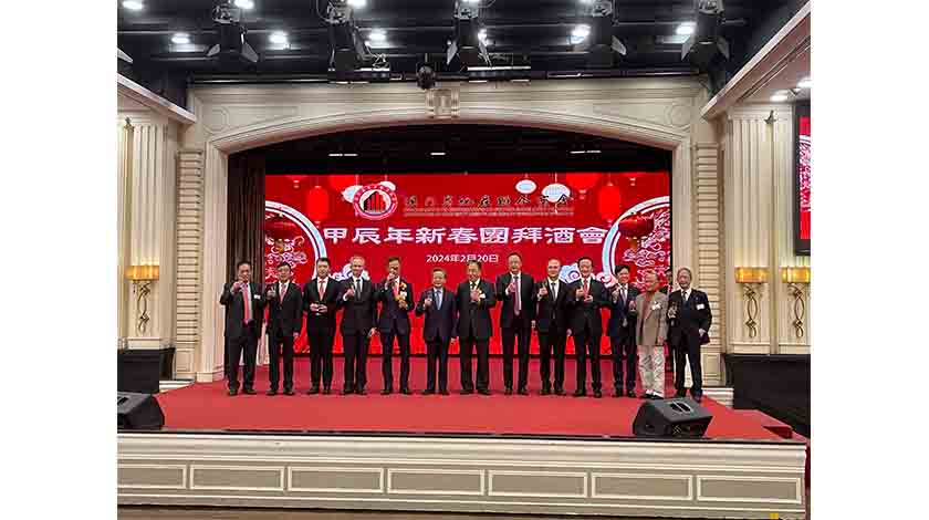 澳門房地產聯合商會昨舉行甲辰年新春團拜酒會,邀請澳區全國人大代表、立法會主席兼該會名譽會長高開賢、中聯辦經濟部副處長楊毅、土地工務局局長黎永亮等嘉賓出席。