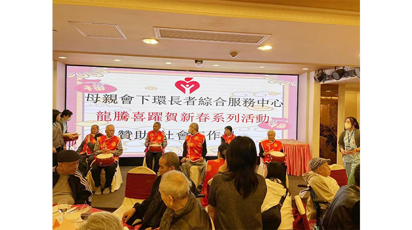 【特訊】龍騰盛世千家喜,春滿神州萬物榮!藉著甲辰龍年新春佳節,母親會下環長者綜合服務中心的日護服務部,日前假濠璟酒店麗景軒中餐廳舉行「龍騰喜躍賀新春系列活動」,邀請院友及家屬一同出席參與,旨在讓院友多感受節日的氣氛,增加院友、家屬及中心員工的互動與交流,除此,也樂讓院友在家人的陪伴下,外出走走,享受陽光,享受共聚好時光,吸引近110人出席參與,活動獲得社工局贊助。