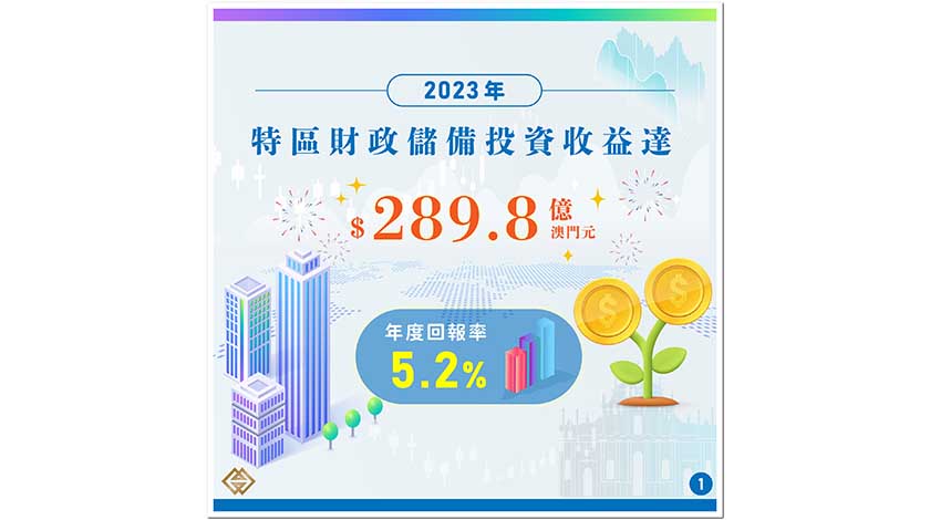 【特訊】2023年,澳門特區財政儲備在審慎而靈活的投資管理下,全年錄得289.8億的投資收益,年度回報率為5.2%。