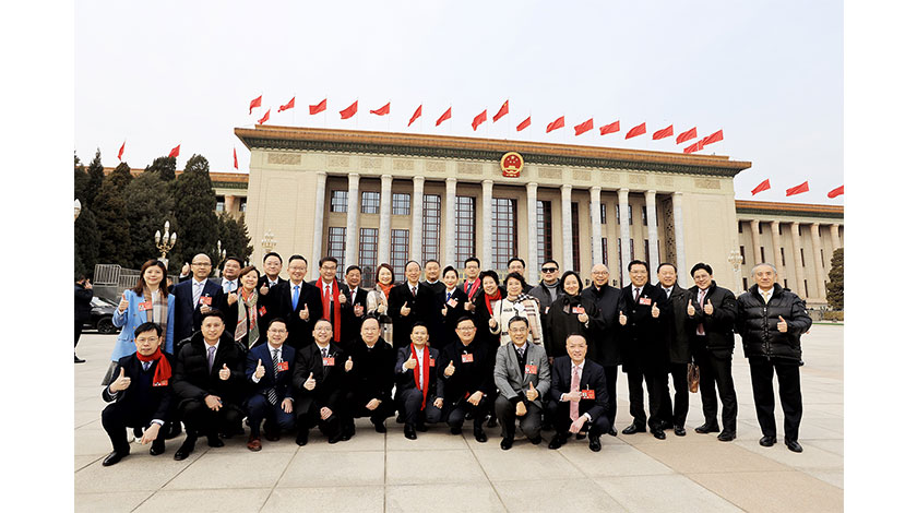 【圖片新聞】3月4日,十四屆全國人大二次會議在北京人民大會堂舉行預備會議。圖為港區全國人大代表合影。(香港中通社)