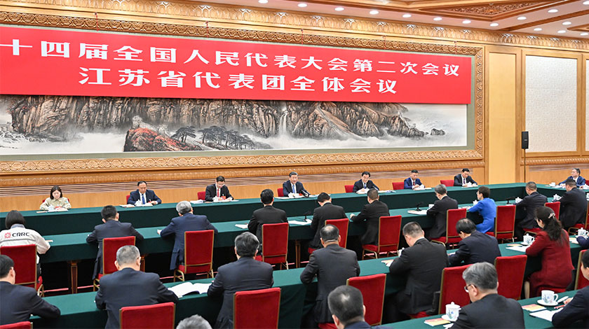 5日中共中央總書記、國家主席、中央軍委主席習近平參加他所在的十四屆全國人大二次會議江蘇代表團審議。新華社