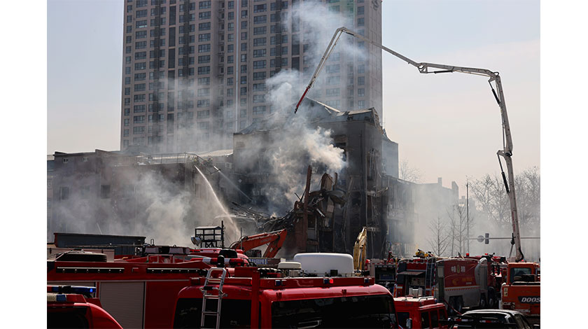 13日7時河北省三河市燕郊一炸雞店發生疑似燃氣洩漏引發的爆燃事故,應急、消防、衛健等有關部門第一時間趕赴現場全力救援處置。圖為事故救援現場。 中新社