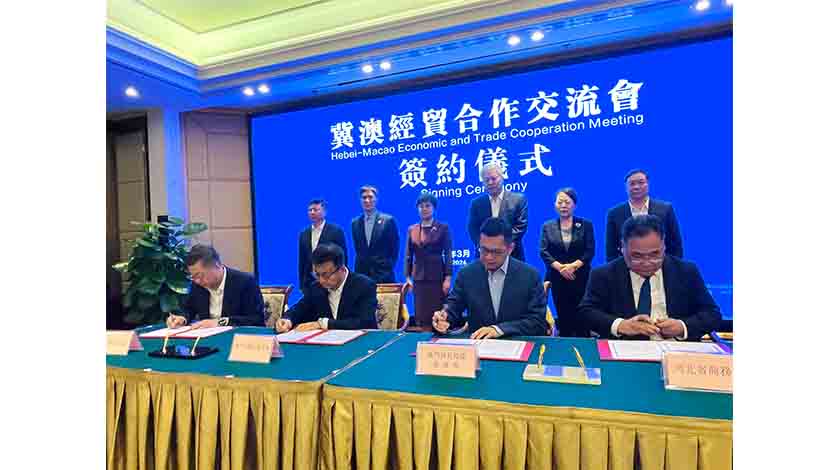 王建峰、中國國際貿易促進委員會河北省委員會會長劉勁松等;澳方代表則有﹕澳門貿易投資促進局主席余雨生、全國政協委員、澳門中國企業協會會長、南光集團有限公司董事長傅建國、中國貿促會駐澳門代表處總代表崔文龍、中國與葡語國家經貿合作論壇常設秘書處副秘書長謝穎等,另有中總、出入口商會、付貨人協會、澳門酒店旅業商會等代表出席,介紹本澳相關行業情況,以及探討與河北的合作和發展空間,業界代表提出雙方在文旅、餐飲、旅遊醫療、科技領域、會展、物流、中醫藥、食品等方面,可以進一步加強交流和合作,把握機遇,促進兩地資源互補。會上,冀澳雙方亦簽署了合作協議,進一步促進雙方交流。
