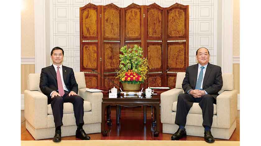 【特訊】行政長官賀一誠昨日在政府總部會見澳門國際銀行董事長黃來志一行,雙方就加強推進本澳金融業發展、支持橫琴粵澳深度合作區建設,以及助力澳門經濟適度多元等議題交流意見。