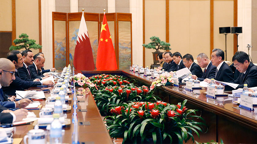 12月12日,中國國務委員兼外長王毅在北京同卡塔爾副首相兼外交大臣穆罕默德共同主持中卡政府間戰略對話機制首次會議。雙方宣佈,兩國全面互免簽證協定將從12月21日起正式生效。 (中新社圖片/ 韓海丹 攝)