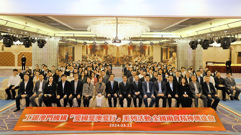 【特訊】工銀澳門機構日前舉辦“‘愛國愛澳愛行’系列活動——全國兩會精神傳達會”,向員工分享“兩會”內容及精神。澳區全國人大代表兼代表團團長、中國僑聯副主席劉藝良,澳區全國政協委員、澳門立法會議員邱庭彪應邀作為分享嘉賓,工銀澳門董事長高明、行政總裁牛建軍,中國工商銀行澳門分行總經理林孜、副總經理鄭凱,工銀澳門副行政總裁曹代福、鄭斌、龔光慶,康委會會長、澳門立法議員羅彩燕和康委會理事長黃敏賢,以及員工代表共200多人出席會議。