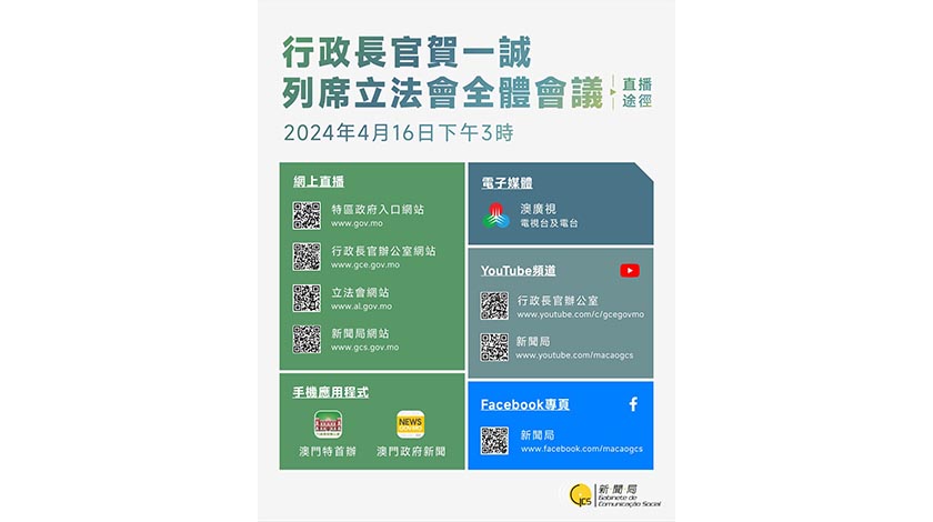 - 新聞局Facebook專頁( www.facebook.com/macaogcs )