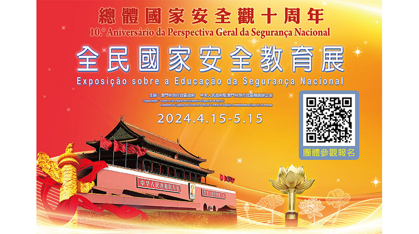 【特訊】今年4月15日是我國第九個“全民國家安全教育日",澳門特別行政區政府與中央人民政府駐澳門特別行政區聯絡辦公室連續第七次舉辦“全民國家安全教育展",展期由4月15日至5月15日,展覽地點為新口岸畢仕達大馬路澳門綜藝館,歡迎市民前往參觀,團體則可透過網上報名參觀及預約導賞服務。