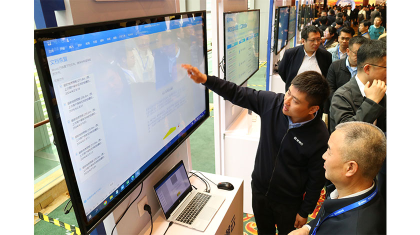 4月2日,“雲端眺望 向‘數’而生”數字創新生態大會在山東青島啟幕。與會代表體驗大模型應用場景。