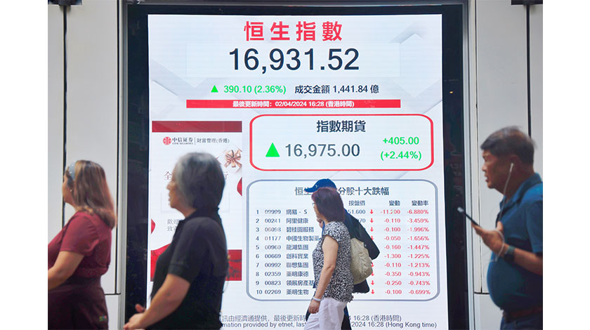 【香港中通社4月2日電】(記者 陳偉根)4月2日是港股在復活節長假後首個交易日,恒生指數一度突破17000點大關,收市報16931點,升390點,升幅近2.4%。當日主板成交額近1442億港元。