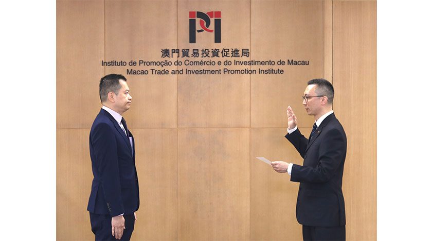 【特訊】澳門貿易投資促進局行政管理委員會執行委員梁華峰之就職儀式於昨日在中葡綜合體貿促局辦公點舉行。經濟財政司司長李偉農、經濟財政司司長辦公室主任辜美玲出席見證。儀式由貿促局行政管理委員會主席余雨生主持,局方領導及部門主管出席。