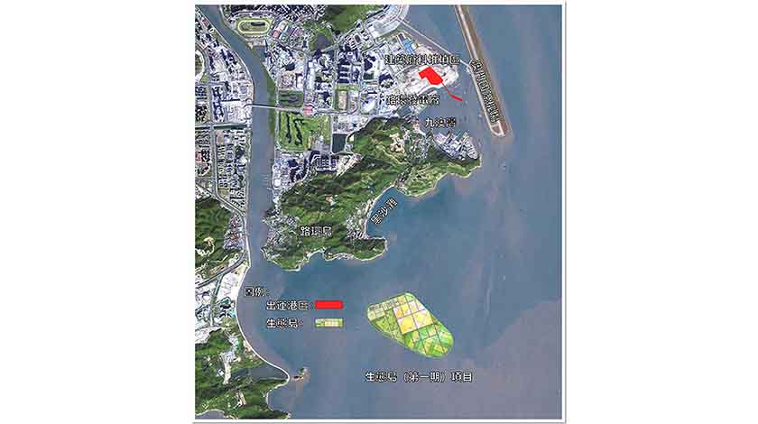 公示介紹,「生態島(第一期)」位於澳門海域南面,北面距澳門路環島約一公里,東北面距澳門國際機場人工島南端約三點七公里的,為用海總面積約一點四平方公里的離岸廢料堆填區。規劃施工連營運期合共約十年。