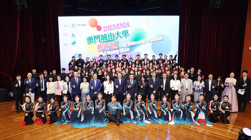 【特訊】為慶祝中華人民共和國成立75周年及澳門回歸祖國25周年,澳門城市大學昨天(25日)在氹仔校區文化中心舉行了2023/2024藝術團文藝匯演,通過多元化的音樂及舞蹈演出,展示城大學子良好的精神面貌及藝術水平,營造多彩校園文化,陶冶師生藝術情操,助力學子全人發展,促進對外宣傳交流。活動吸引逾三百名師生參與,共赴一場精彩絕倫的視聽盛宴。