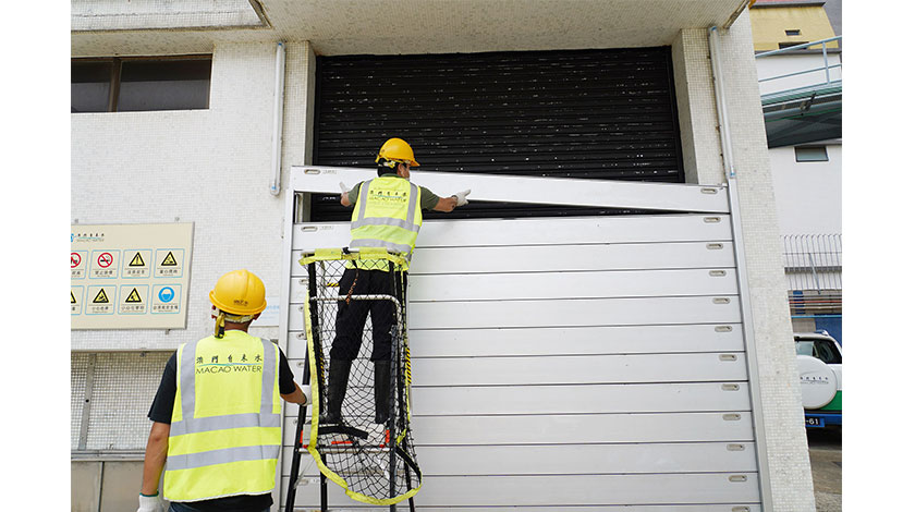 演習模擬澳門受到超強颱風「水晶魚」吹襲,行政長官宣佈進入即時預防狀態,民防架構隨即啟動,澳門自來水亦同步啟動應變機制,落實危機管理預案中的各項防洪防風措施,包括安排值班人員駐守各水廠,在各水廠內重要生產設施的出入口加裝水密門或防洪閘,協調應急供水設備就位等,以應付可能出現的突發事故;同時派員前往民防行動中心駐守,實時匯報最新供水狀況,並透過傳媒、電子服務平台及社交媒體加強與市民的溝通,適時發放最新的供水資訊。