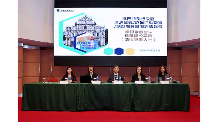 【特訊】警察總局金融情報辦公室、法務局及澳門律師公會於昨日共同舉辦《澳門特別行政區清洗黑錢/恐怖活動融資/擴散融資風險評估報告》講解會,讓澳門公證員及律師業界瞭解本澳整體性清洗黑錢/恐怖活動融資/擴散融資的風險評估的最新情況,講解會共240名公證員、律師、實習律師及相關業務人員出席。