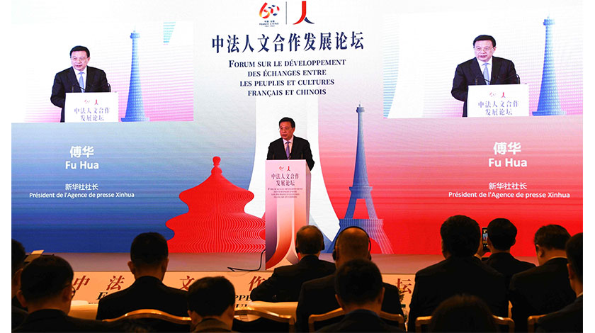 新華通訊社社長傅華在致辭中表示,本次論壇是在中國國家主席習近平即將對法國進行國事訪問之際舉辦的一次人文交流盛會,對於推動中法媒體、智庫、企業等領域合作,促進中法兩國文化彼此交融、交流互鑒具有重要意義。