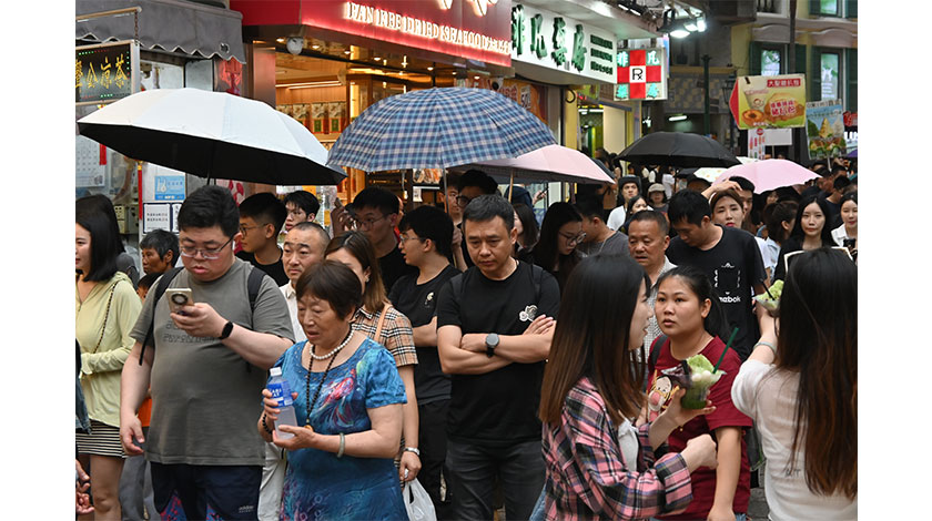 儘管“五一”假期天氣不佳,但澳門各大景區仍人頭湧湧。著名景點大三巴牌坊、議事亭前地、氹仔官也街等地多次實施臨時人潮管制,疏導客流。福隆新街步行區和氹仔龍環葡韻等活化中的歷史片區也吸引不少旅客前往參觀。