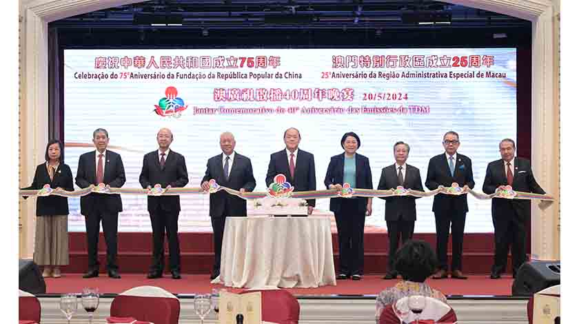 澳廣視昨假萬豪軒酒樓舉行慶祝中華人民共和國成立七十五周年、澳門特別行政區成立二十五周年,以及澳廣視啟播四十周年慶祝晚宴。行政長官賀一誠、中聯辦副主任嚴植嬋、外交部駐澳門特派員公署特派員劉顯法、立法會主席高開賢等嘉賓應邀出席並主禮,各界人士五百多人出席。宴上,澳廣視董事會主席飛安達、董事會副主席暨執行委員會主席羅崇雯代表公司向退休及四十年年資員工頒贈紀念品,表彰他們的貢獻。