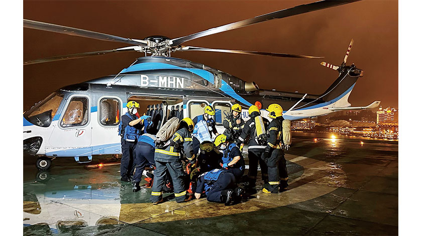 演習於前晚8時開始,歷時約1小時,參與人員約100名,動用消防救援及救護車輛共7輛,過程順利。此次演練由港澳直升機服務營運商亞太航空有限公司統籌,參與單位包括海關、治安警察局、消防局、衛生局、海事及水務局和民航局。