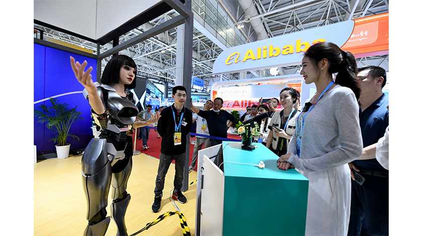 5月23日,第七屆數字中國建設峰會現場體驗區在福建省福州海峽國際會展中心開放。本次現場體驗區面積5.6萬平方米,圍繞本屆峰會主題“釋放數據要素價值,發展新質生產力”,設置“數字惠民”“數字能力”“數字基礎”“數字生態”“數字賦能”五大版塊,生動展示千行百業轉型發展、全民共享數字紅利的生動圖景。圖為參觀者與仿真人形機器人交流互動。 中新社
