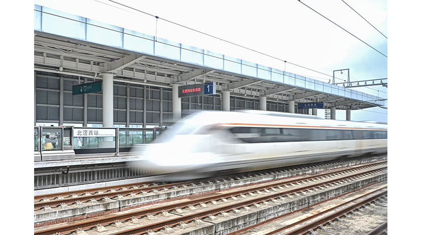 5月26日,廣佛南環、佛莞城際鐵路正式投入運營,並與已運營的莞惠、佛肇城際鐵路相連實現“四線”貫通,從而形成一條全長258公里、橫跨5座城市(廣州、佛山、肇慶、東莞、惠州),最高時速達200公里的粵港澳大灣區交通大動脈。圖為列車駛離廣佛南環北滘西站。 中新社