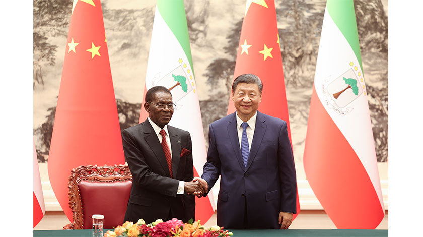 5月28日中國國家主席習近平在北京人民大會堂同來華進行國事訪問的赤道几內亞總統奧比昂舉行會談。兩國元首宣佈,將中赤幾關係提昇為全面戰略合作夥伴關係。會談後,兩國元首共同見證簽署關於投資、經濟發展、數字經濟、綠色發展、落實全球發展倡議等領域多項雙邊合作文件。 中新社