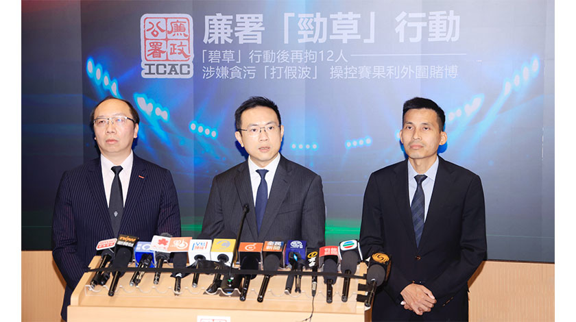 【香港中通社5月29日電】(記者 譚暢)香港廉政公署29日召開記者會,公佈打擊假球的“勁草”行動,拘捕12人。這是繼去年“碧草”行動後,廉政公署再有大型打擊假球行動。