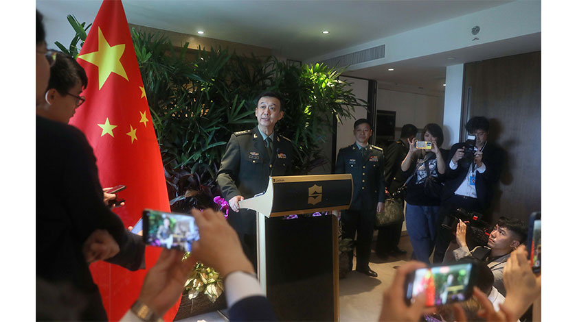 董軍在會談時表示,中美兩軍關係健康發展符合雙方共同利益,也是國際社會的普遍期待。當前兩軍關係止跌企穩的局面來之不易,兩軍應堅守不衝突不對抗的底線,真正當好兩國關係的穩定基石。