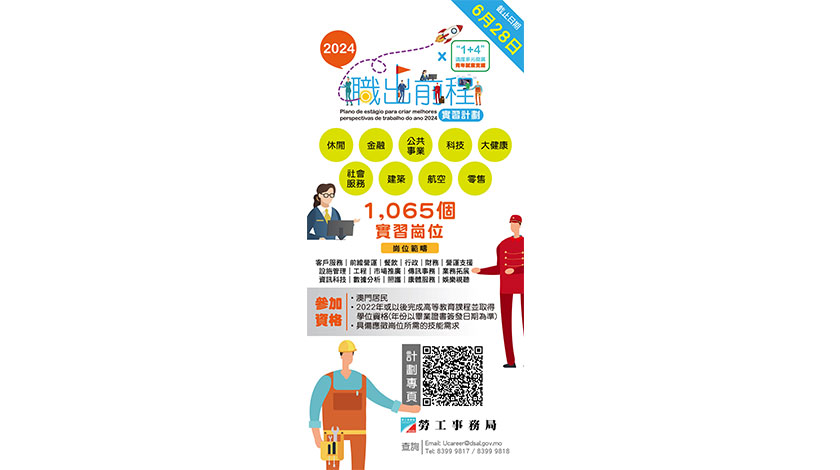 有興趣參加計劃的澳門青年請盡早遞交申請,如欲了解更多計劃詳情,可瀏覽以下計劃專頁https://www.dsal.gov.mo/zh_tw/standard/employment_recruitment_local_intern_2024.html。