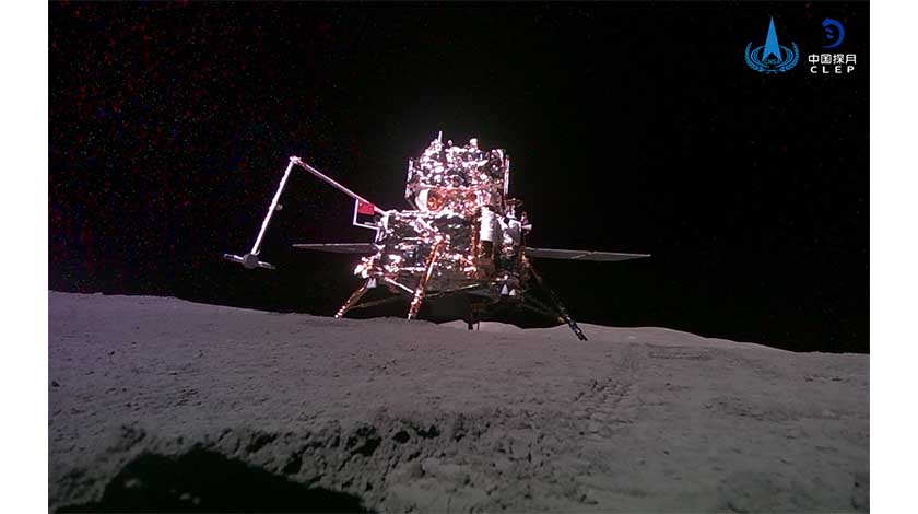 6月3日,嫦娥六號攜帶的“移動相機”,自主移動並成功拍攝、回傳著陸器和上昇器合影。 中新社