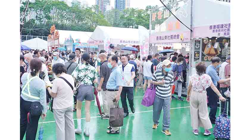 香港家鄉市集人流不減。6月4日,香港第二屆同鄉社團家鄉市集嘉年華進入尾聲,但依然人流不減,不少攤位大排長龍,亦有非遺表演吸引大批市民觀看。(香港中通社)