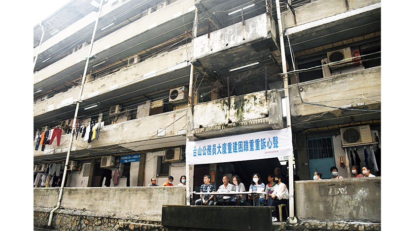 【本報訊】台山公務員大廈的業主昨早會見傳媒。業主代表向傳媒表示,大廈已有五十九年樓齡,存在安全隱憂。他們已在二零一九年決議通過重建,在二零二零年申請規劃條件圖,二零二三年再次申請且在今年二月批出。