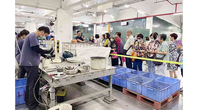 導賞員向長者們介紹資源回收系統,特別是對小家電、碳粉盒、電池等各式廢舊家電回收後的處理流程,包括:拆解、破碎、粉碎、分選等處理流程,將可回收或再用的物料運往其他國家及地區進行循環再造,令長者們增廣見聞。隨後,更聽取導賞員介紹澳門各區內的回收電器設備站的位置,真正推動落實減少電子廢料、資源浪費,從自己做起的環保理念,同時,亦鼓勵親友養成節能、環保回收的好習慣。隨後,中心更為長者們安排茶聚,長者們歡聲笑語,心情開朗,場面氣氛歡樂熱鬧。