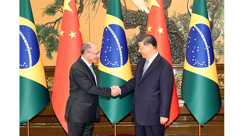 6 月 7日 ,中國國家主席習近平在北京人民大會堂會見巴西副總統阿爾克明 。 中新社