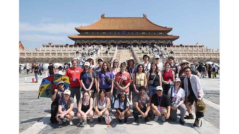 6月11日,美國艾奧瓦州中學生“友誼傳承”研學團的師生們在北京故宮博物院參觀研學。 中新社