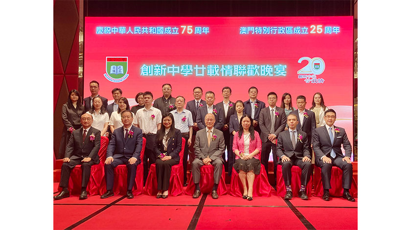 【特訊】創新中學於6月15日舉辦「創新中學廿載情聯歡晚宴」,連同嘉賓、教職人員及學生,約250人出席。晚宴在全場肅立奏唱國歌後展開。當晚出席的嘉賓包括:創新教育協會及校董會主席蘇樹輝博士、教育及青年發展局-持續教育處黎玉燕處長、澳門中華教育會楊珮欣副理事長等。他們在晚宴中高度評價了創新中學過往的成就,並對學校未來的發展前景表示了信心和期望。