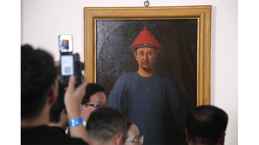 6月16日,由意大利烏菲齊美術館收藏的特別展品《康熙大帝肖像》在上海東一美術館展出。據悉,這件作品在18世紀初期,由意大利畫家傑凡尼•熱拉蒂尼 (又名聶雲龍)繪畫完成。(中新社)