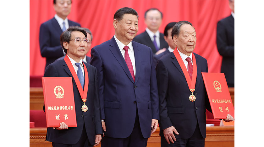6月24日,全國科技大會、國家科學技術獎勵大會和中國科學院第二十一次院士大會、中國工程院第十七次院士大會在人民大會堂隆重召開。中共中央總書記、國家主席、中央軍委主席習近平出席大會,為國家最高科學技術獎獲得者等頒獎併發表重要講話。 中新社