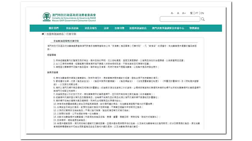 “手信業(食品零售)行業守則”已載於消委會網頁(https://www.consumer.gov.mo/Shop/ShopInt.aspx?lang=zh)供查閱。