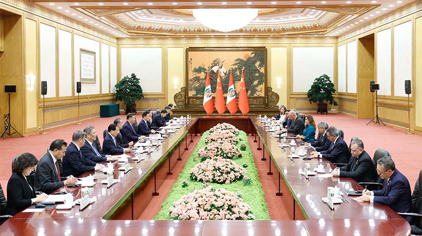 6月28日下午,中國國家主席習近平在北京人民大會堂同來華進行國事訪問的秘魯總統博魯阿爾特舉行會談。 中新社