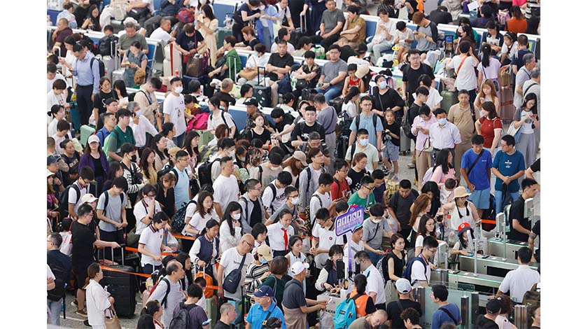 7月1日,記者從中國鐵路上海局集團有限公司獲悉,2024年暑期旅客運輸7月1日啟動,長三角鐵路預計發送旅客1.74億人次,日均發送旅客280萬人次。期間,長三角鐵路部門計劃開行旅客列車1341.5對,同比增加30.5對。圖為旅客在鐵路上海虹橋站等待驗票上車。 中新社